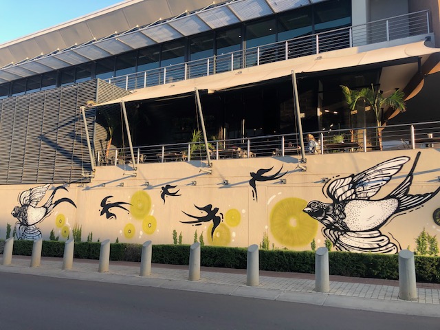 The eye-catching graffiti art at The Club and The Village gives the Old East Precinct a very distinctive visual appearance that truly supports the slogan “Art of development – Inspired by Atterbury”. We spoke to artist Brent Black from Spaza Studio, who created the striking bird mural.